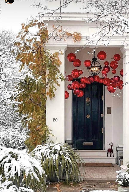 Decorações de Natal de Parede e Porta com Toques Vermelhos
